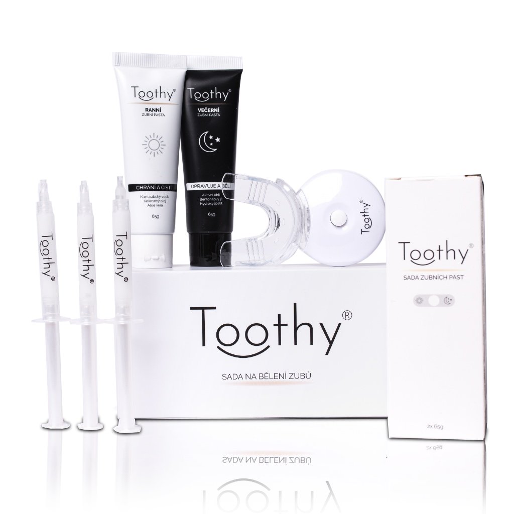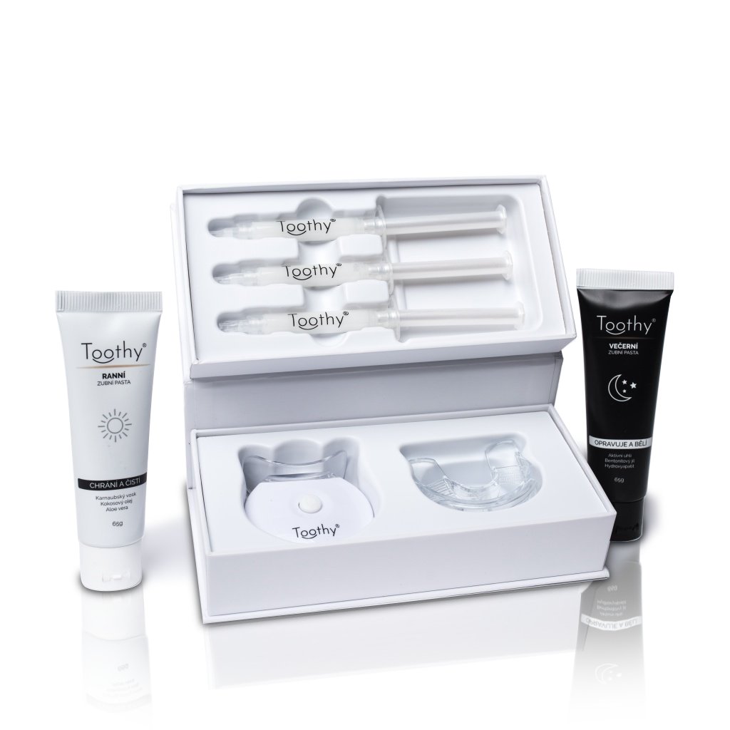 Sada Toothy®️ Launcher Set je skvělá volba, pokud nevíte kde začít a chcete nastartovat své bělení. Sada obsahuje bělící gely na 6 dní, během kterých se Vaše zuby rozzáří a vybělí o několik odstínů. LED světlo Vám pak zůstane pro případné opakované bělení a Vy se můžete do budoucna zásobovat pouze doplňujícími gely Toothy®️ Gel Kit.