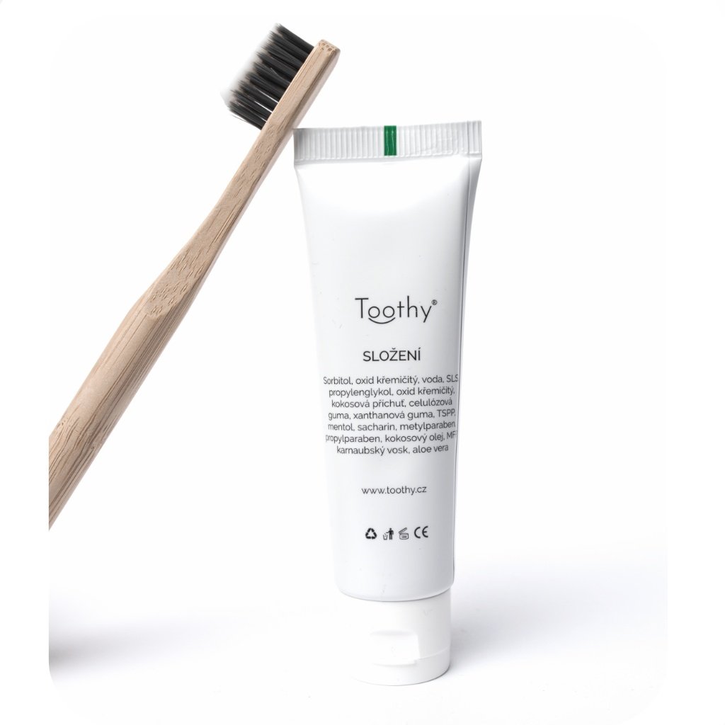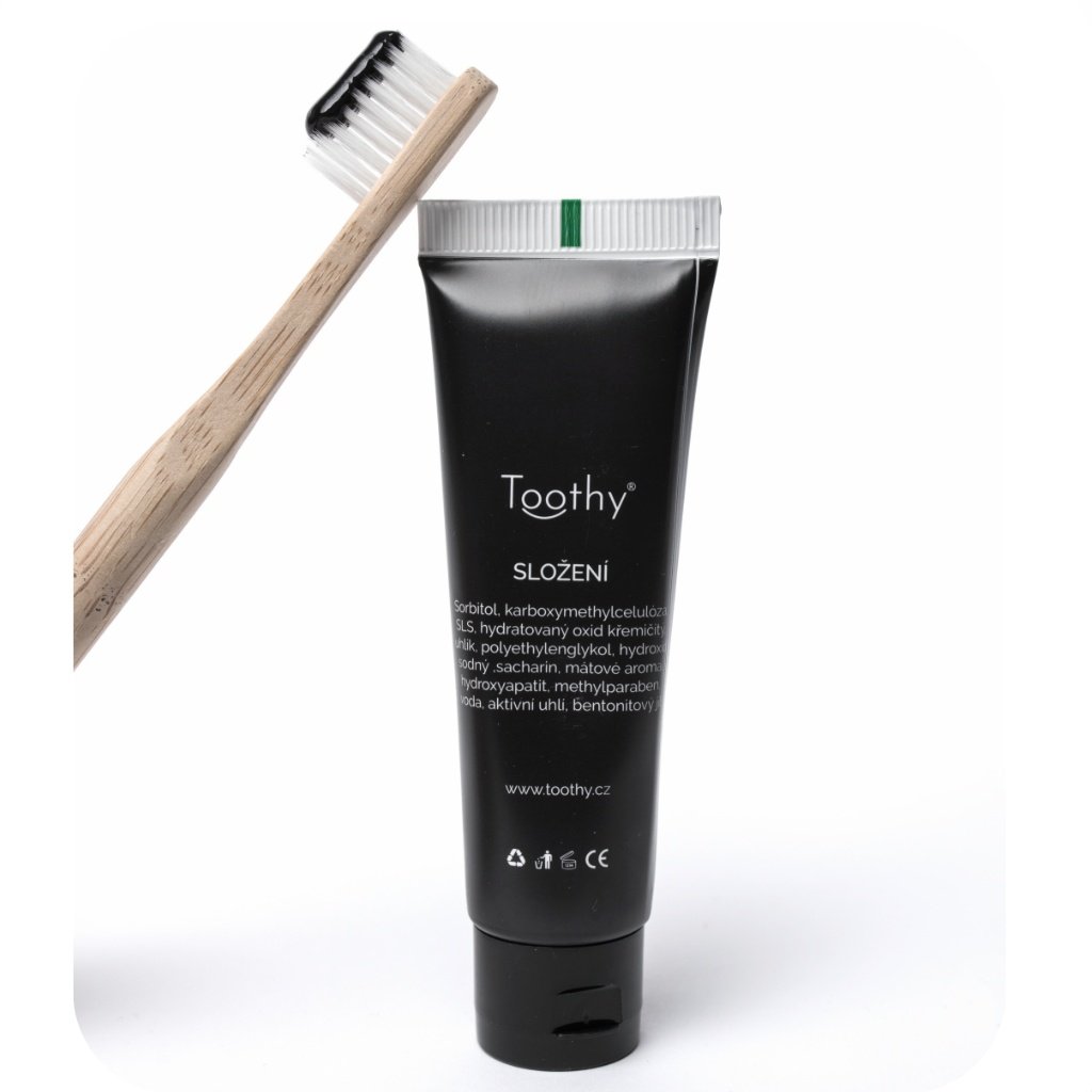 Sorbitol, karboxymethylcelulóza, SLS, hydratovaný oxid křemičitý, uhlík,